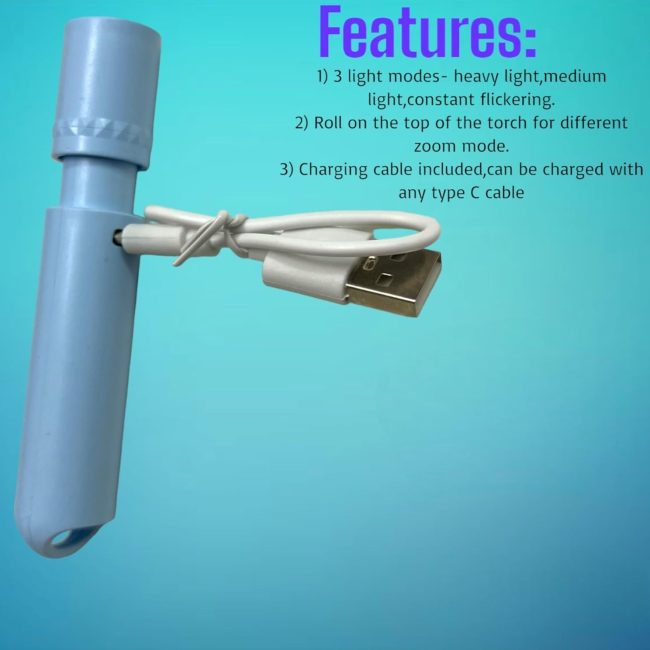 High-Power LED Torch Light – Rechargeable Flashlight with Tactical Hammer & Power Bank With Box, Random color