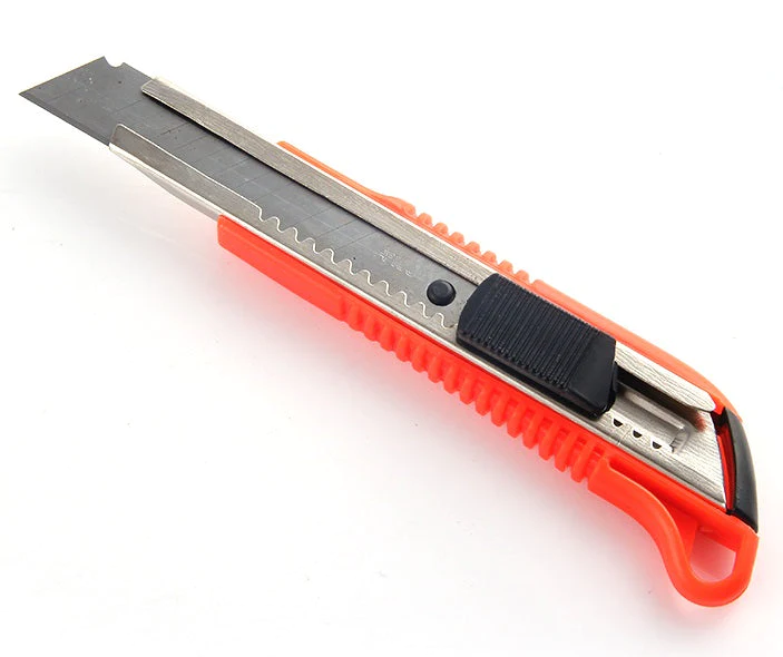 Featuring a sharp retractable blade, the cutter offers excellent control for slicing through paper, cardboard, plastic, and other light materials. The blade is housed in a durable plastic body with a comfortable grip for safe handling. It also includes a sliding lock mechanism that allows you to fix the blade in place for stability and safety during use.